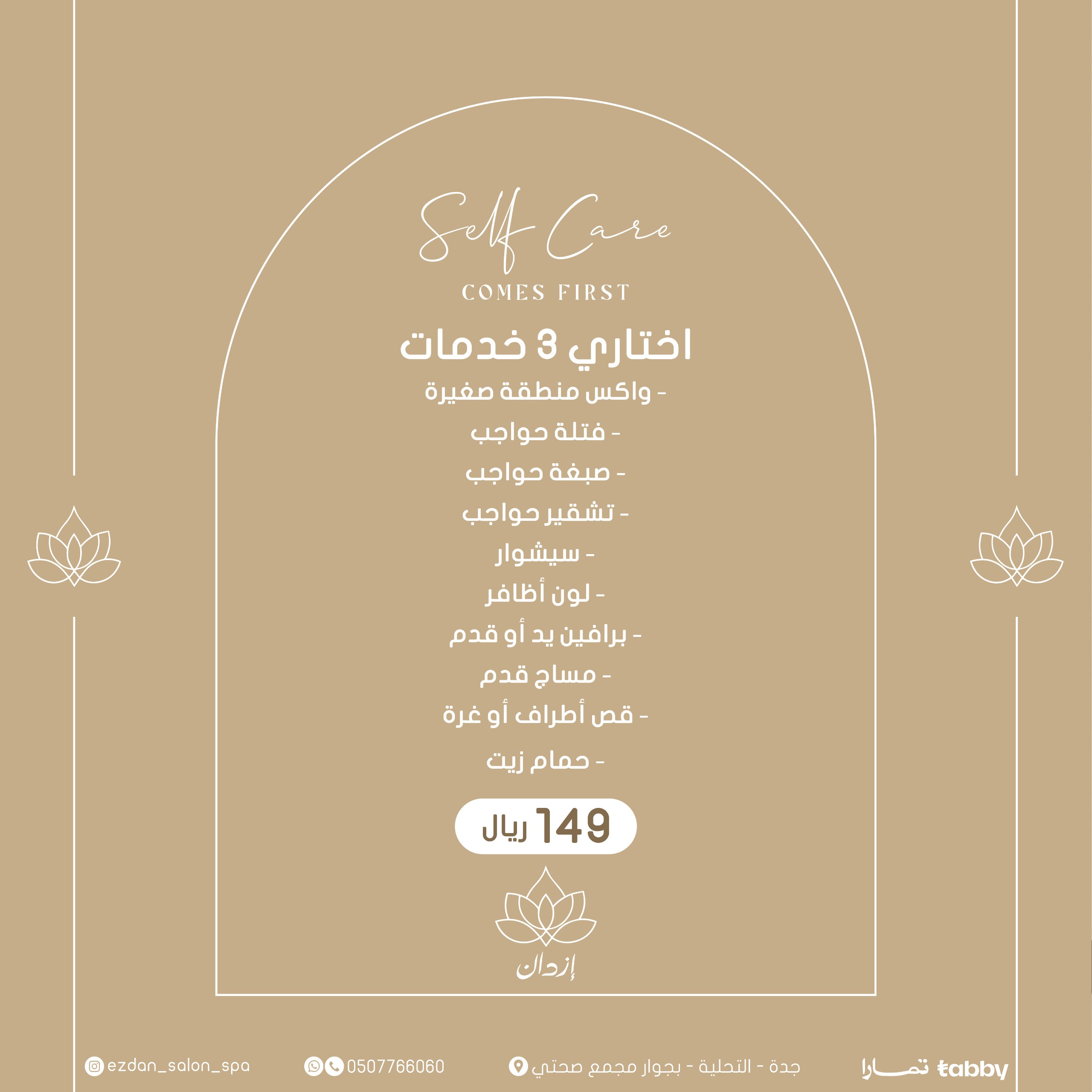 سواء كنت تخططين لجلسة عناية شاملة أو ترغب في تحسين جزء معين من إطلالتك، فإن صالون إزدان هو المكان المثالي لتحقيق ذلك.