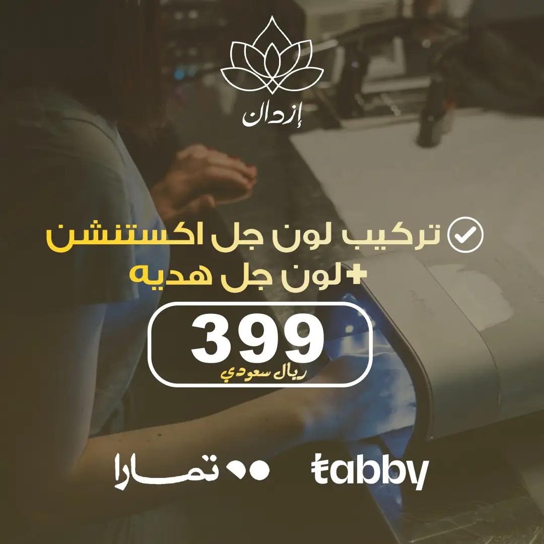 العرض الحالي لتركيب جل إكستنشن مقابل 399 ريال فقط يجعل من صالون إزدان الوجهة المثالية لكل من تبحث عن الجودة والتميز بأسعار تنافسية.